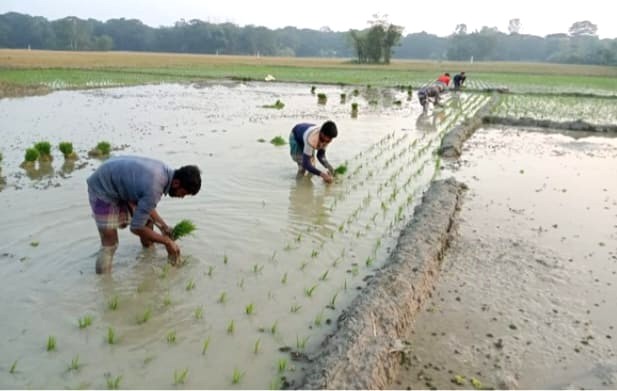 কনকনে শীত উপেক্ষা করে বোরো ধান রোপণে কৃষকরা