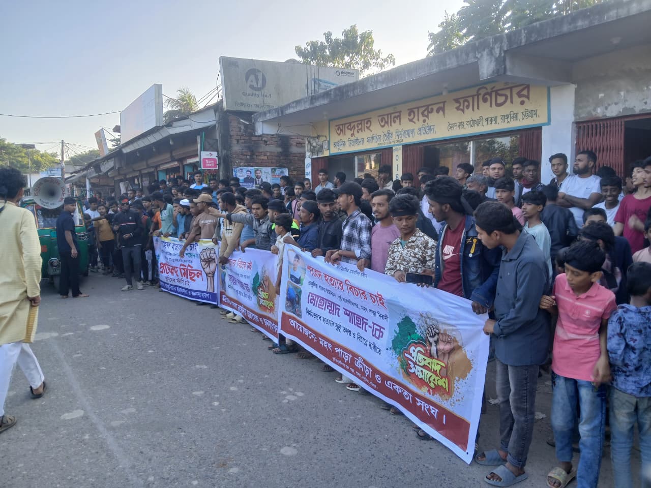 চট্টগ্রামের রাঙ্গুনিয়া উপজেলার পারুয়া ইউনিয়নের পূর্ব সাহাব্দীনগর মহৎ পাড়ার কিশোর মুহাম্মদ শাহেদ ইসলাম (১৭) হত্যাকাণ্ডের সুষ্ঠু তদন্ত ও দোষীদের দৃষ্টান্তমূলক শাস্তির দাবিতে প্রতিবাদ সমাবেশ ও বিক্ষোভ মিছিল করেছে স্থানীয় ছাত্রসমাজ ও এলাকাবাসী।