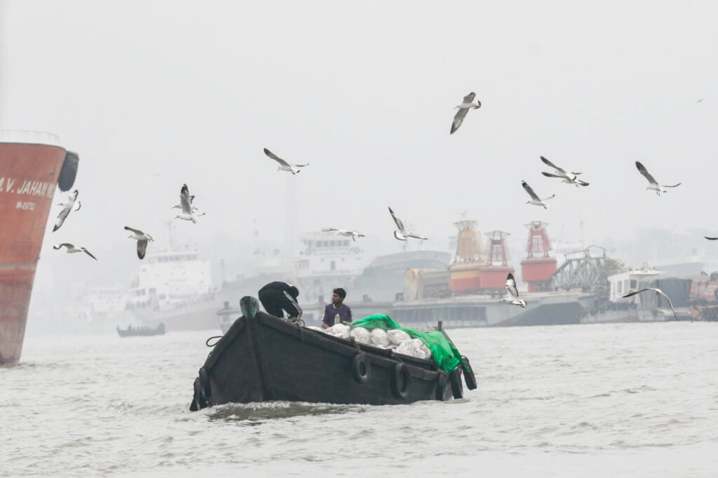 কর্ণফুলী নদীর সদরঘাট এলাকা থেকে সকালে তোলা ছবি।