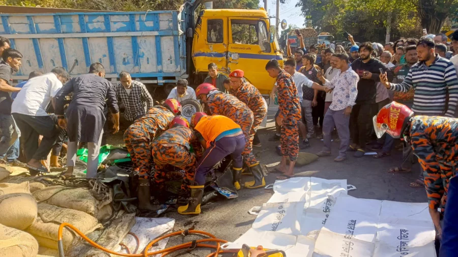 খবর পেয়ে স্থানীয় লোকজন, পুলিশ ও ফায়ার সার্ভিস এসে ট্রাকের নিচে চাপা পড়া নারী এবং অটোরিকশাটি উদ্ধার করে।