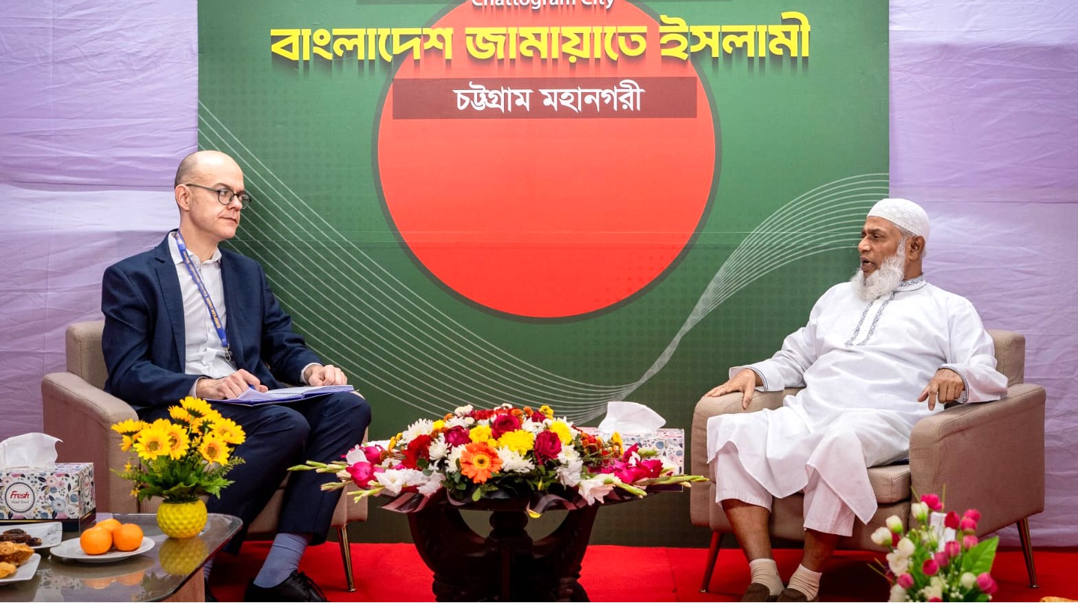 ইউরোপীয় ইউনিয়নের নির্বাচন পর্যবেক্ষক প্রতিনিধিদলের সঙ্গে সৌজন্য সাক্ষাৎ করেছেন জামায়াতে ইসলামীর চট্টগ্রাম মহানগরী নেতৃবৃন্দ। বুধবার (২৮ জানুয়ারি) সকাল ১১টায় নগরীর জামায়াতে ইসলামীর কার্যালয়ে এ বৈঠক অনুষ্ঠিত হয়।