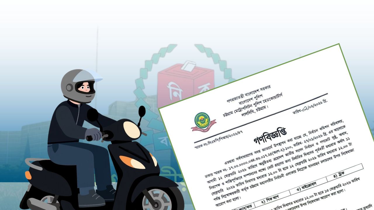 এছাড়া ১০ ফেব্রুয়ারি দিনগত রাত ১২টা থেকে ১৩ ফেব্রুয়ারি রাত ১২টা পর্যন্ত মোটরসাইকেল চলাচলেও নিষেধাজ্ঞা আরোপ করা হয়েছে।