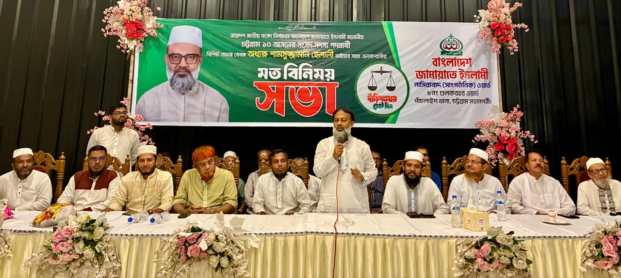 চট্টগ্রাম নগর জামায়াতের সাংগঠনিক সম্পাদক ও চট্টগ্রাম-১০ আসনের প্রার্থী অধ্যক্ষ শামসুজ্জামান হেলালী বলেছেন, দল ও মতের ঊর্ধ্বে উঠে জনগণের পরীক্ষিত বন্ধুকে বেছে নিতে হবে। তিনি আশ্বাস দিয়ে বলেন, নির্বাচিত হলে সরকারি বরাদ্দের প্রতিটি টাকা জনগণের উন্নয়ন ও সেবার জন্য কাজে লাগানো হবে, কোনো প্রকার অপচয় বা দুর্নীতি করা হবে না।
