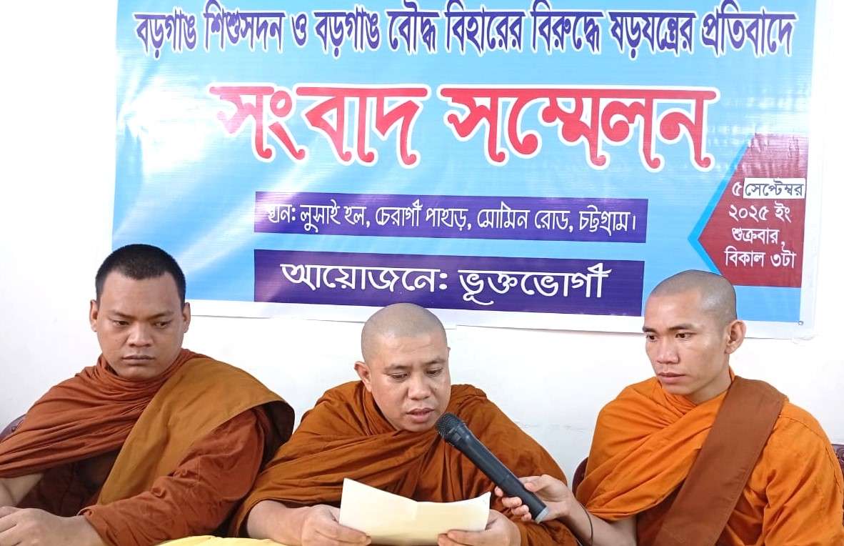 শুক্রবার (৫ সেপ্টেম্বর) দুপুরে নগরীর চেরাগী পাহাড়স্থ লুসাই হলে আয়োজিত সংবাদ সম্মেলনে এ অভিযোগ করেন বড়গাঙ বৌদ্ধ বিহারের উপাধ্যক্ষ ভদন্ত ধর্মকীর্তি ভিক্ষু। সংবাদ সম্মেলনে প্রজ্ঞা দর্শন ভিক্ষু, কুমার কশ্যপ ভিক্ষুসহ দুই বিহারের পরিচালনা কমিটির সদস্য ও ভিক্ষুরা উপস্থিত ছিলেন।