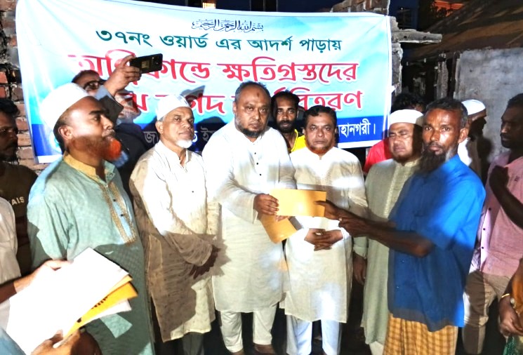 বন্দর আদর্শ পাড়ায় অগ্নিকাণ্ডে ক্ষতিগ্রস্তদের পাশে জামায়াত