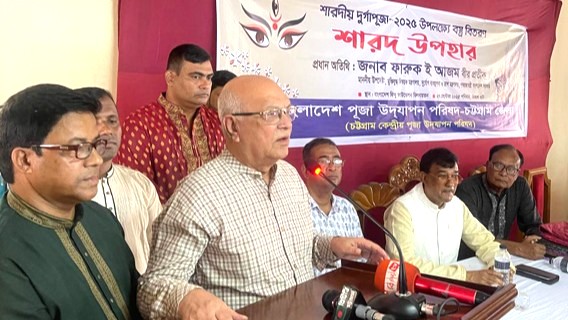শনিবার (২৭ সেপ্টেম্বর) বিকেলে চট্টগ্রামের জামালখানে বাংলাদেশ হিন্দু ফাউন্ডেশন মিলনায়তনে শারদীয় দুর্গাপূজা-২০২৫ উপলক্ষে আয়োজিত বস্ত্র বিতরণ অনুষ্ঠানে প্রধান অতিথির বক্তব্যে তিনি একথা বলেন।