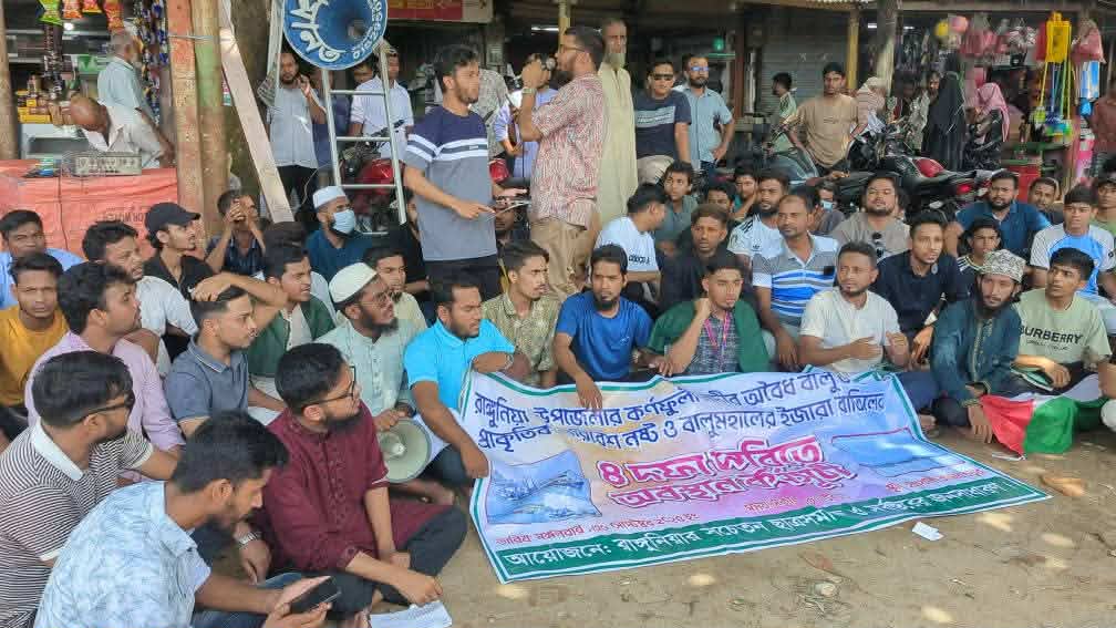 চট্টগ্রামের রাঙ্গুনিয়া উপজেলায় কর্ণফুলী নদীতে অবৈধ বালু উত্তোলন, প্রাকৃতিক পরিবেশ ধ্বংস, শিক্ষা প্রতিষ্ঠানের শিক্ষার পরিবেশ বিপর্যয় ও স্থানীয় জনজীবনের ক্ষতির প্রতিবাদে অবস্থান কর্মসূচি অনুষ্ঠিত হয়েছে।