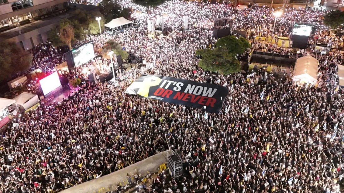 টাইমস অব ইসরায়েলের প্রতিবেদন অনুসারে, ‘এখন নয়তো কখনোই না’ – লেখা সম্বলিত বিশাল ব্যানার নিয়ে জনতা বিক্ষোভ করে। মার্কিন প্রেসিডেন্ট ডোনাল্ড ট্রাম্প নিজেই বার্তাটি প্রতিধ্বনিত করছেন এবং ব্যানারের ছবি পোস্ট করছেন।