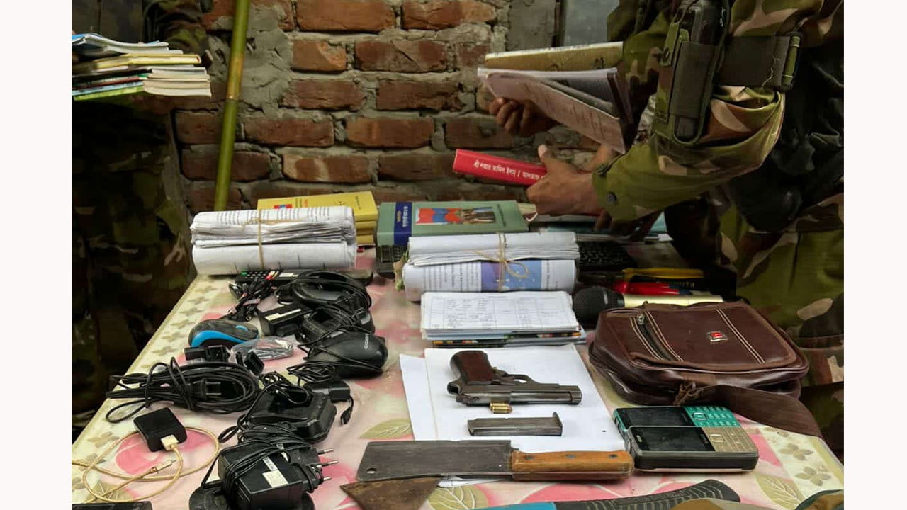 পরবর্তীতে ওই স্থানে তল্লাশি চালিয়ে ইউপিডিএফ সশস্ত্র সদস্যদের ব্যবহৃত একটি পিস্তল, একটি ম্যাগাজিন, দুই রাউন্ড এ্যামোনিশন, ১৫টি ব্যানার, দুটি ওয়াকিটকি চার্জার, দুটি মোবাইল ফোন, ধারালো অস্ত্র এবং বেশ কিছু সরঞ্জামাদি উদ্ধার করা হয়।