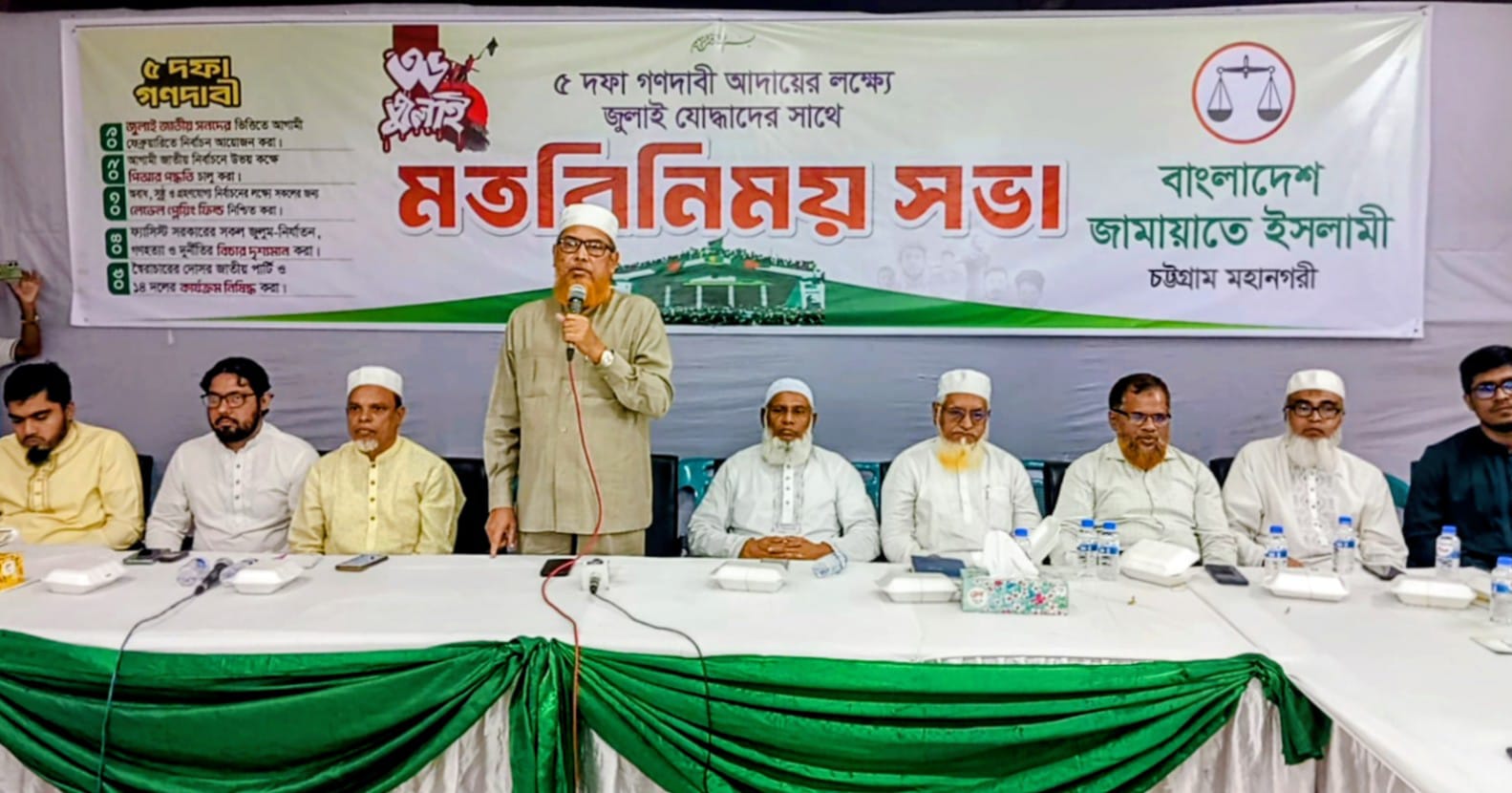 সোমবার বাংলাদেশ জামায়াতে ইসলামী চট্টগ্রাম মহানগরীর উদ্যোগে নগর কার্যালয়স্থ বিআইএ মিলনায়তনে আয়োজিত ‘৫ দফা গণদাবী আদায়ের লক্ষ্যে জুলাই যোদ্ধাদের নিয়ে মতবিনিময় সভা’-তে প্রধান অতিথির বক্তব্যে তিনি এসব কথা বলেন।