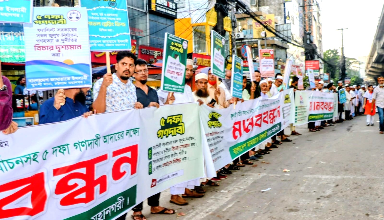 ৫ দফা গণদাবি আদায়ের লক্ষ্যে চট্টগ্রাম মহানগরী জামায়াতে ইসলামীর উদ্যোগে সোমবার ওয়াসা মোড়ে আয়োজিত মানববন্ধনে প্রধান অতিথির বক্তব্যে এসব কথা বলেন তিনি।