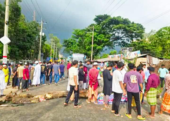 জানা যায়, জুমার নামাজ শেষে উপজেলা মডেল মসজিদ থেকে বের হয়ে স্থানীয় শতাধিক মানুষ গাছের টুকরো ও বাঁশ ফেলে সড়কে ব্যারিকেড দেন। তারা দ্রুত মহাসড়কটিকে ৬ লেনে উন্নীত করার দাবি জানিয়ে বিক্ষোভ করেন।