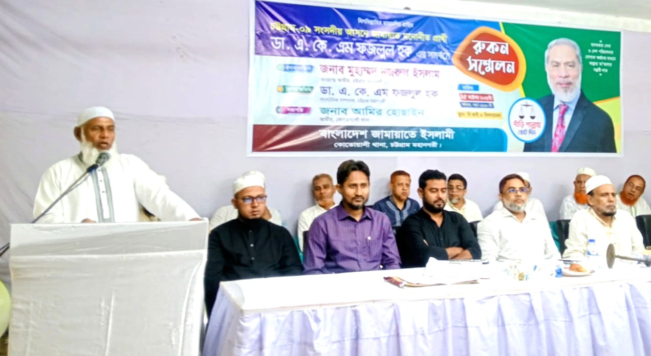 শনিবার (২৫ অক্টোবর) বিকেলে দেওয়ান বাজারস্থ বাংলাদেশ ইসলামী একাডেমি (বিআইএ) মিলনায়তনে কোতোয়ালী থানা জামায়াতের রুকন সম্মেলনে প্রধান অতিথির বক্তব্যে তিনি এ কথা বলেন।