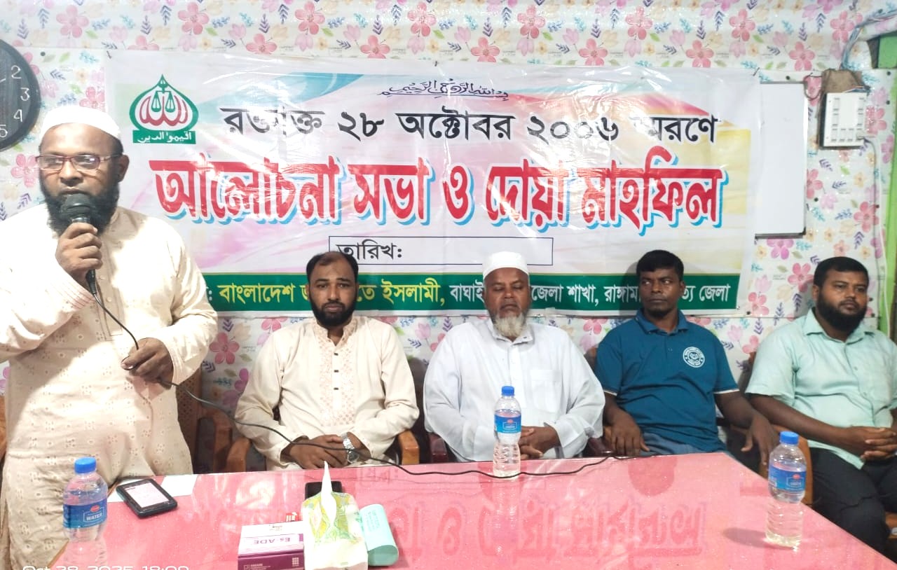 ২০০৬ সালের ঐতিহাসিক রক্তাক্ত ২৮ অক্টোবরের শহীদদের স্মরণে বাংলাদেশ জামায়াতে ইসলামী বাঘাইছড়ি উপজেলা শাখার উদ্যোগে আলোচনা সভা ও দোয়া মাহফিল অনুষ্ঠিত হয়েছে।