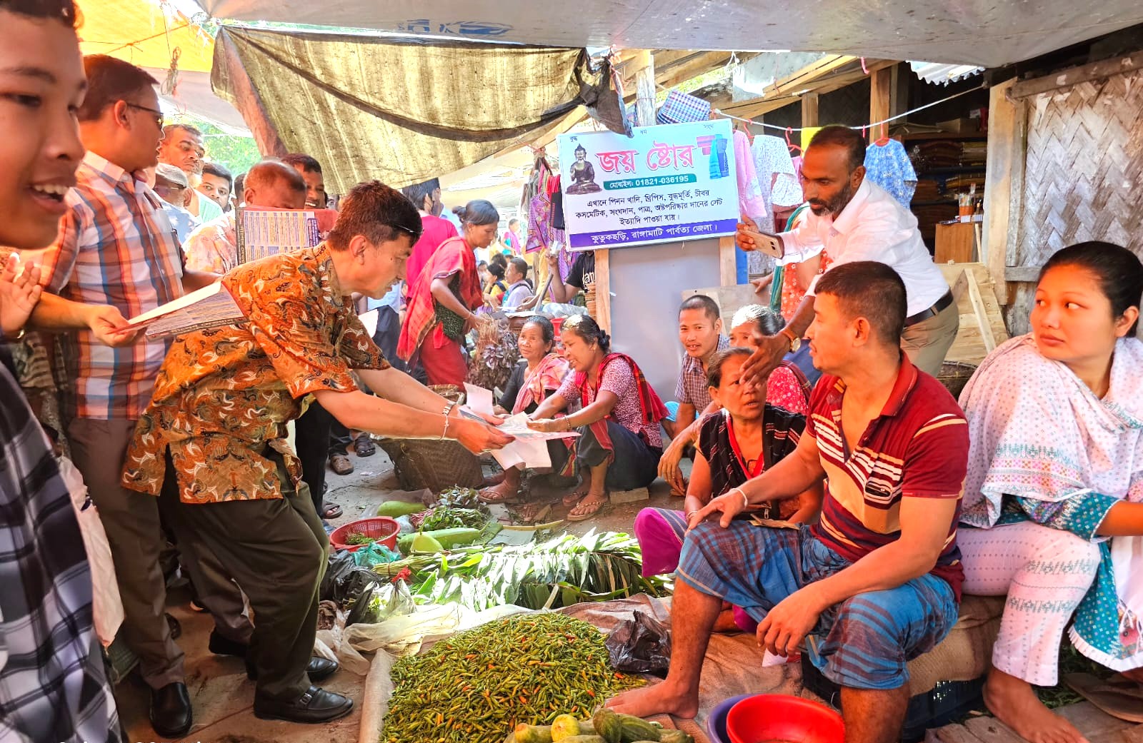 দূর-দূরান্ত থেকে আগত পাহাড়ি ও বাঙালি সাধারণ মানুষের মাঝে বিএনপির ভারপ্রাপ্ত চেয়ারম্যান তারেক রহমান ঘোষিত রাষ্ট্র পুনর্গঠনের দিকনির্দেশনাসম্পন্ন লিফলেট বিতরণ করা হয়।