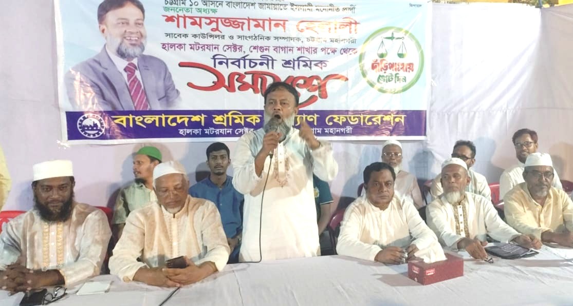 বাংলাদেশ জামায়াতে ইসলামী মনোনীত চট্টগ্রাম-১০ আসনের প্রার্থী ও মহানগর জামায়াতের সাংগঠনিক সম্পাদক সাবেক কাউন্সিলর অধ্যক্ষ শামসুজ্জামান হেলালী বলেছেন, ‘৩৬ জুলাই বিপ্লবে শ্রমজীবী মানুষরা সর্বাত্মকভাবে অংশ নিয়ে বিপ্লবকে গণঅভ্যুত্থানে রূপ দিয়েছিল। শ্রমজীবী মানুষ এদেশের সামাজিক ও রাষ্ট্রীয় শোষণ-বঞ্চনার বিরুদ্ধে যুগ যুগ ধরে আন্দোলন করে আসছে। তাদের উপর চলমান জুলুম-নির্যাতন অবসান করে একটি শোষণমুক্ত দেশ গঠনে বাংলাদেশ জামায়াতে ইসলামী বদ্ধপরিকর।’