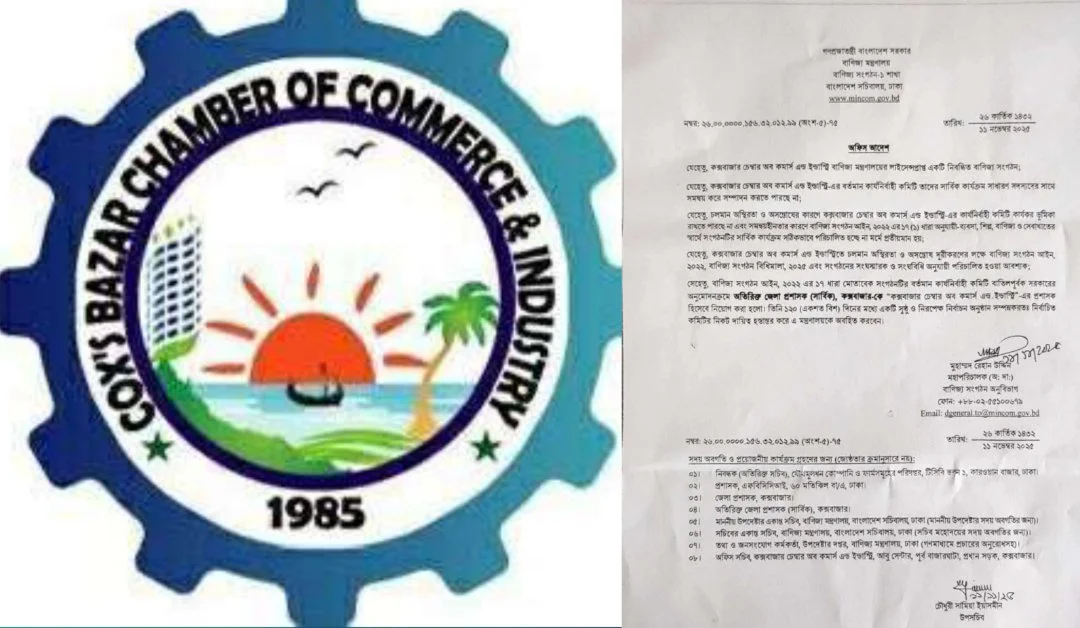 কক্সবাজার চেম্বার অব কমার্স অ্যান্ড ইন্ডাস্ট্রিজের নতুন প্রশাসক নিয়োগ দিয়েছে বাণিজ্য মন্ত্রণালয়। ১১ নভেম্বর বাণিজ্য মন্ত্রণালয়ের একটি অফিস আদেশে এ তথ্য জানানো হয়।