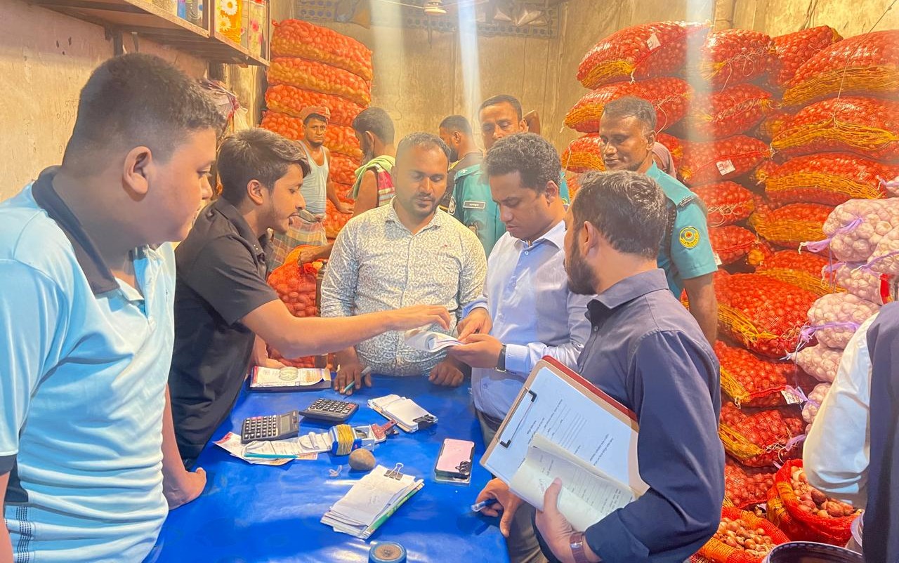 অন্যদিকে, খাতুনগঞ্জ পাইকারি বাজারে পেঁয়াজের বিভিন্ন আড়তে মনিটরিং অভিযান পরিচালনা করে জেলা প্রশাসন ও কৃষি বিপণন অধিদপ্তরের যৌথ টিম, যার নেতৃত্বে ছিলেন জেলা প্রশাসনের সহকারী কমিশনার ও এক্সিকিউটিভ ম্যাজিস্ট্রেট শিফাত বিনতে আরা।