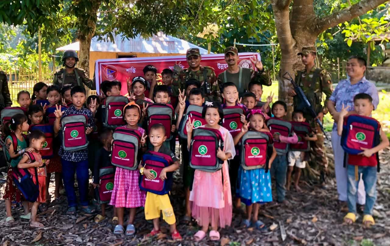 রাঙামাটি জেলার বাঘাইছড়ি উপজেলার সাজেক ইউনিয়নের ভূয়াছড়ি এলাকায় স্থানীয় জনগণের কল্যাণে সুবিধা বঞ্চিত শিশুদের মাঝে শিক্ষা উপকরণ, খেলার সামগ্রী বিতরণ এবং চিকিৎসা সেবা প্রদান করেছে বাংলাদেশ সেনাবাহিনীর বাঘাইহাট সেনা জোন।