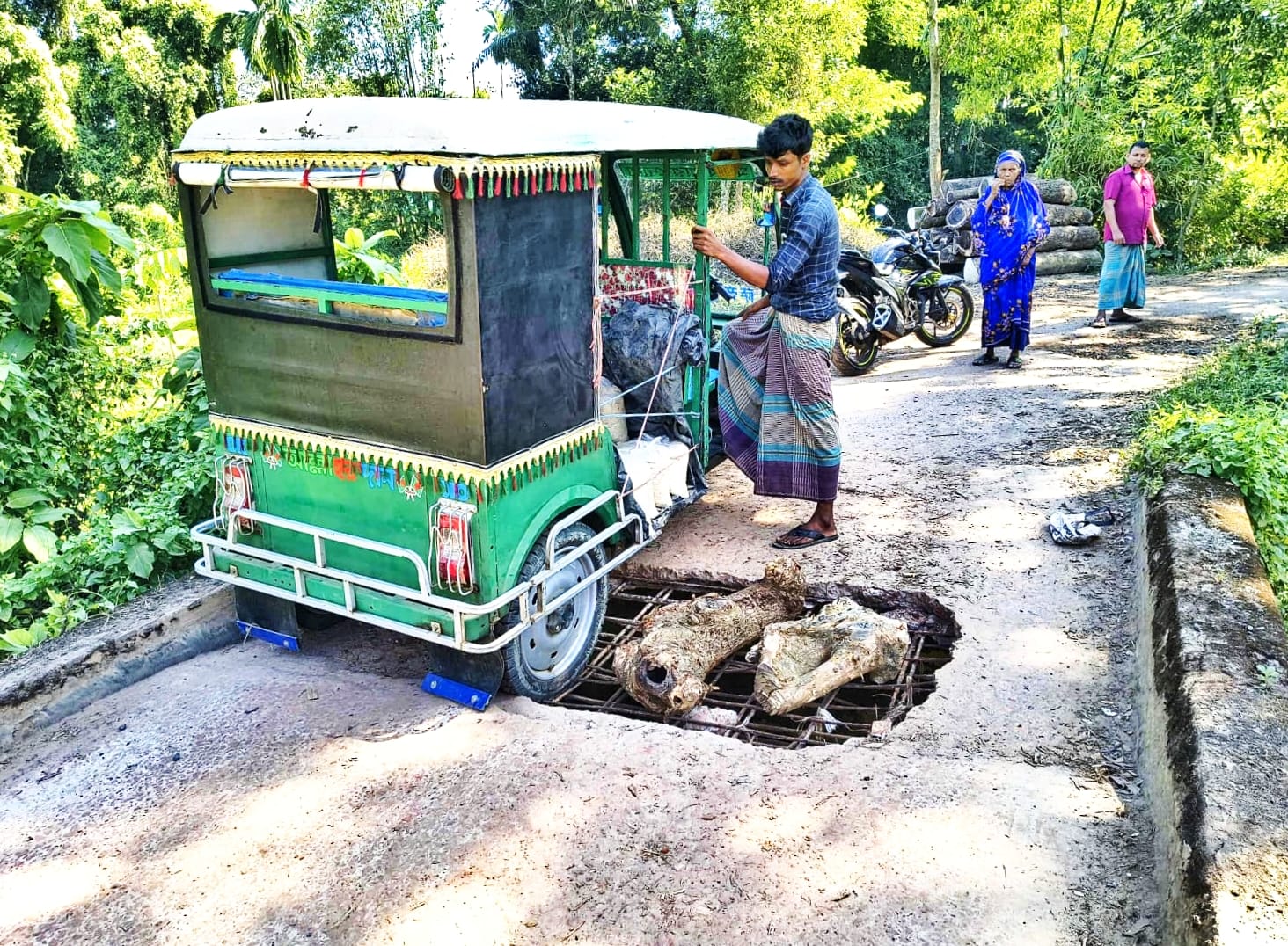কালভার্টে গর্ত, ঝুঁকিপূর্ণভাবে চলছে যানবাহন