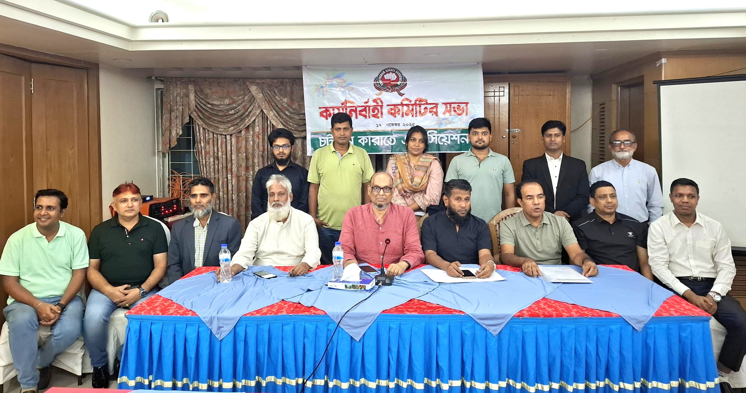 চট্টগ্রাম কারাতে এসোসিয়েশনের কার্যনির্বাহী কমিটির সভা অনুষ্ঠিত হয়েছে সোমবার (১৭ নভেম্বর) রাতে নগরীর এশিয়ান এস আর হোটেলে। সভায় সভাপতিত্ব করেন এসোসিয়েশনের সভাপতি ও সাবেক সিটি করপোরেশন কাউন্সিলর নিয়াজ মোহাম্মদ খান। সংগঠনের সাংগঠনিক সম্পাদক আবু মোশারফ রাসেলের সঞ্চালনায় সভায় সাধারণ সম্পাদক কাউসার আহমেদ সম্প্রতি অনুষ্ঠিত ২য় পুলিশ কমিশনার কাপ কারাতে প্রতিযোগিতাসহ বিভিন্ন কার্যক্রমের রিপোর্ট উপস্থাপন করেন।