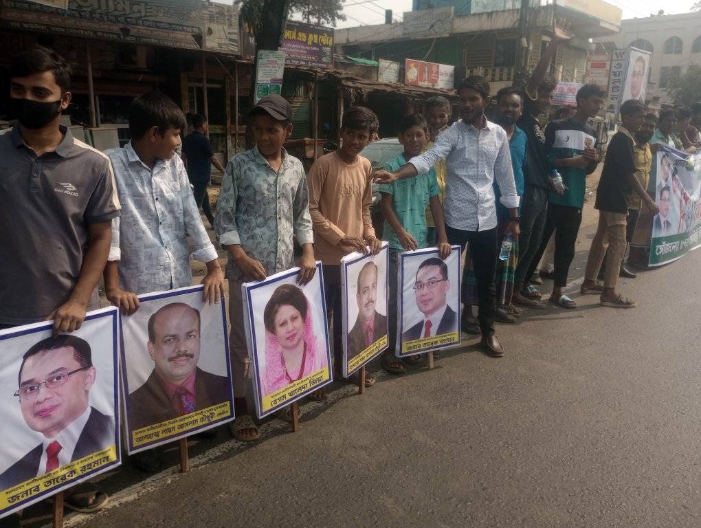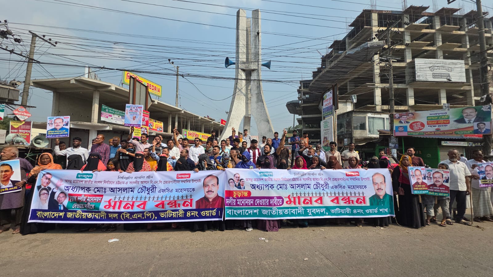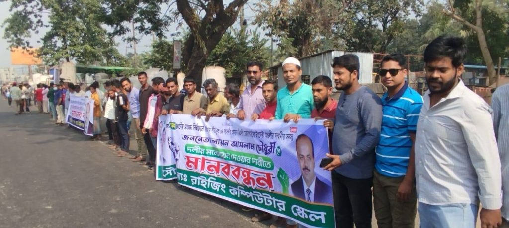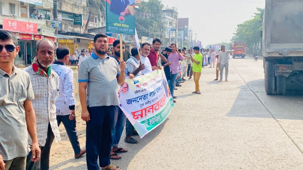 আসলাম চৌধুরীর মনোনয়নের দাবিতে মহাসড়কজুড়ে মানববন্ধন