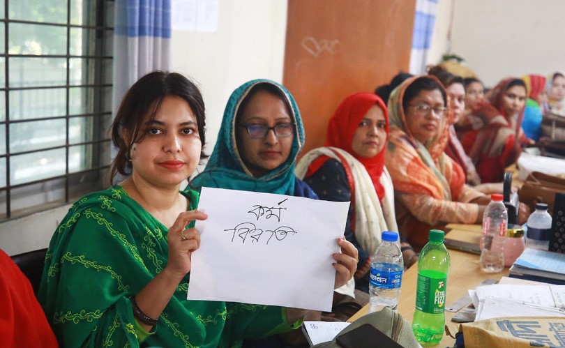 তিনি আরও জানান, ২৩ ও ২৪ নভেম্বর সারাদেশে অর্ধদিবস কর্মবিরতি পালনের পর ২৫ নভেম্বর থেকে টানা তিনদিন পূর্ণ দিবস কর্মবিরতি চলবে। দাবি আদায়ে অগ্রগতি না হলে বার্ষিক পরীক্ষা বর্জনসহ ১১ ডিসেম্বর থেকে লাগাতার অনশনে যাওয়ারও ঘোষণা রয়েছে সংগঠনের।