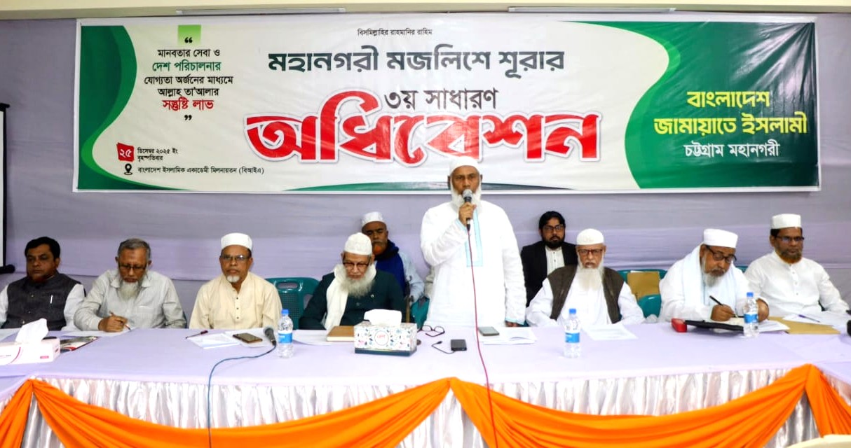 মহানগরী আমীর আরও বলেন, শহীদ হাদির হত্যাকারীদের বিচার, দেশব্যাপী সন্ত্রাসীদের গ্রেপ্তার এবং অবৈধ অস্ত্র উদ্ধারের দাবিতে বাংলাদেশ জামায়াতে ইসলামী মহাসমাবেশের ডাক দিয়েছে। আগামী ৩ জানুয়ারি শনিবার ঢাকার মানিক মিয়া এভিনিউতে অনুষ্ঠিতব্য এই মহাসমাবেশ সফল করতে চট্টগ্রামবাসীসহ দেশবাসীর প্রতি আহ্বান জানান তিনি।